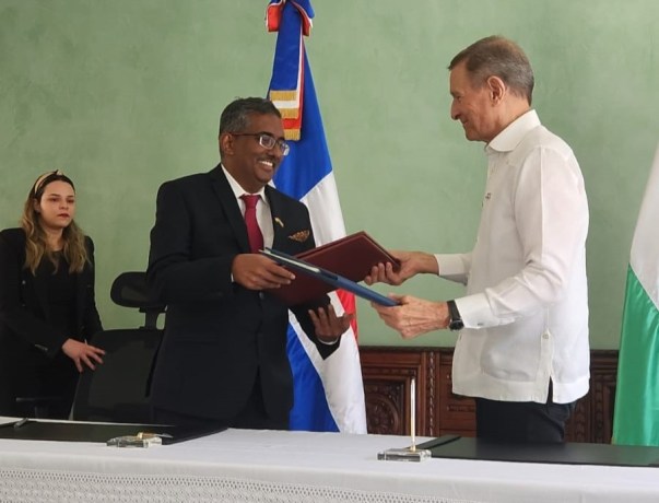 El embajador de India en República Dominicana, Ramu Abbagani, junto al ministro de Relaciones Exteriores, Roberto Álvarez, firmaron un acuerdo que permitirá a empresas de la nación eurasiática establecerse en el país caribeño o entablar alianzas estratégicas con empresas dominicanas.