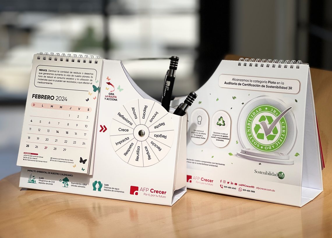 La Administradora de Fondo de Pensiones encontró una forma innovadora de reducir su impacto en el planeta con la creación del calendario reciclado, en su compromiso con la responsabilidad ambiental y la sostenibilidad.