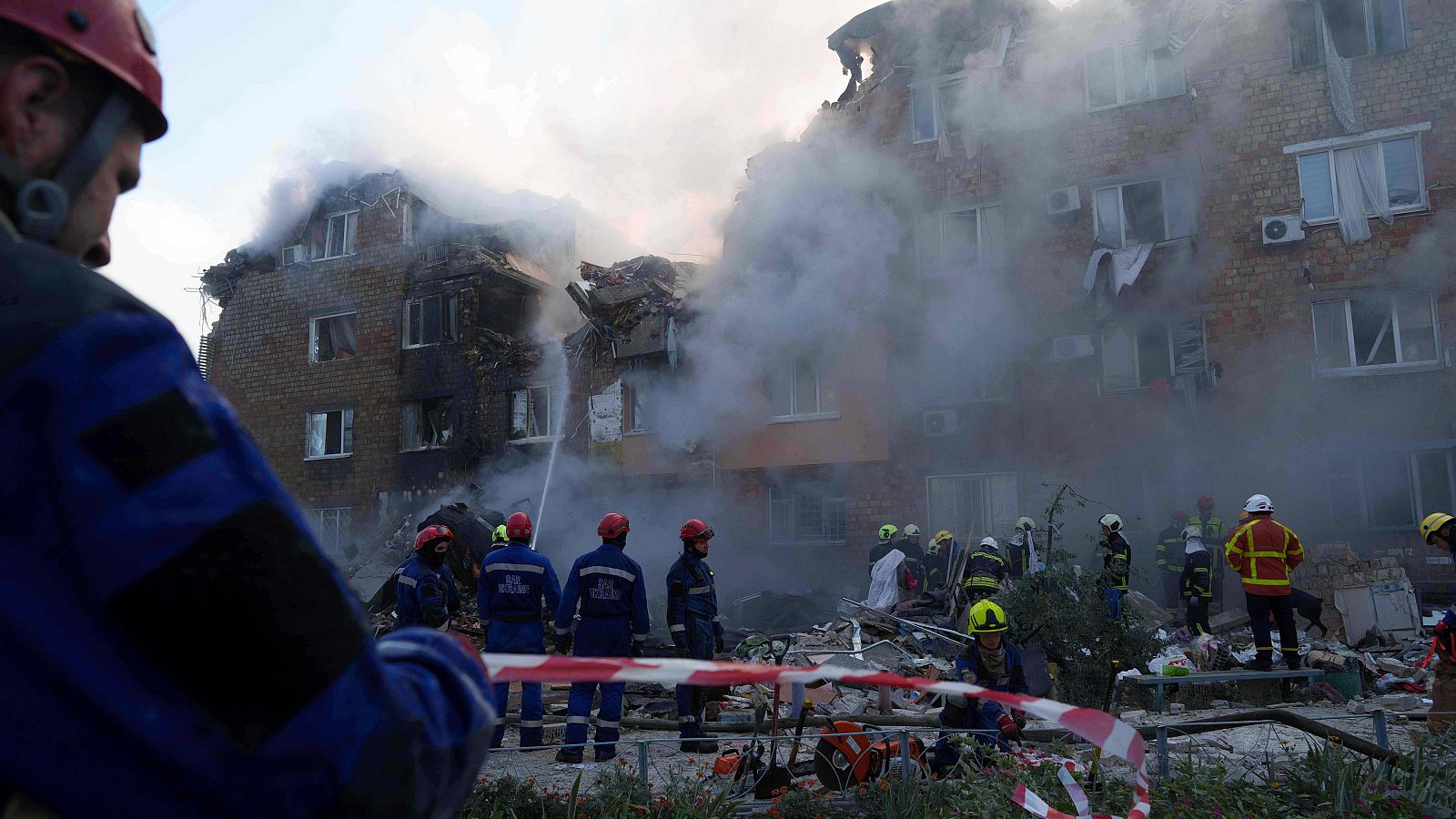 Varios pisos del edificio de cinco plantas del distrito de Darnytskyi se habrían derrumbado, según la Administración Militar de la ciudad de Kiev, que informó de «destrucción significativa». Otro edificio de 16 plantas también resultó dañado. El alcalde de Kiev, Vitali Klitschko, declaró que las primeras explosiones se oyeron hacia las 21:30 del miércoles y que las defensas antiaéreas se activaron hacia medianoche.