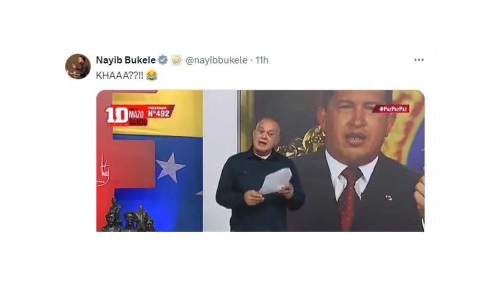 Bukele colgó el video en sus cuentas de redes sociales junto a una expresión de pregunta y risas. “KHAAA??!! 😂”