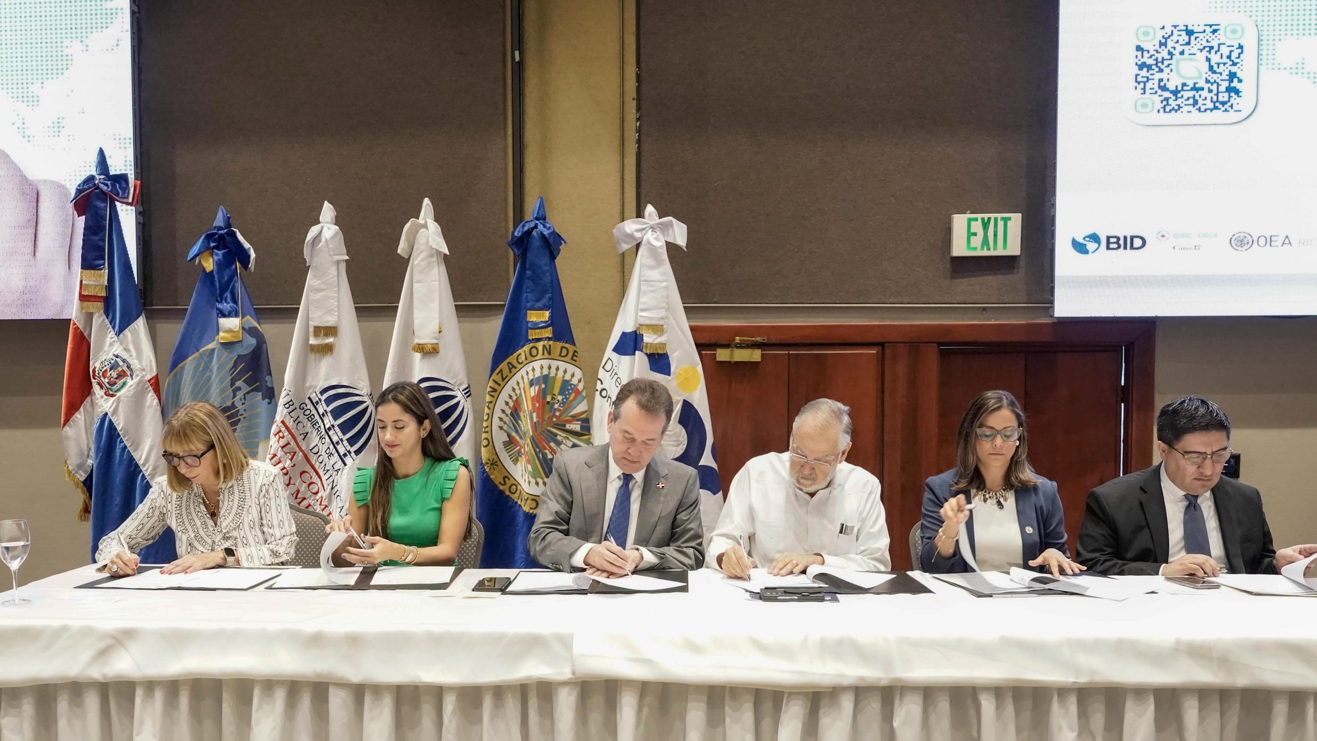 El acto contó con la participación de la representante de la OEA en el país, Araceli Azuara; Helena Fonseca, especialista principal del Programa de Compras Públicas de la OEA y secretaria técnica de la RICG, el consultor de la OEA-BID, Franco De Pasquale y el economista país del BID, Steve Brito.