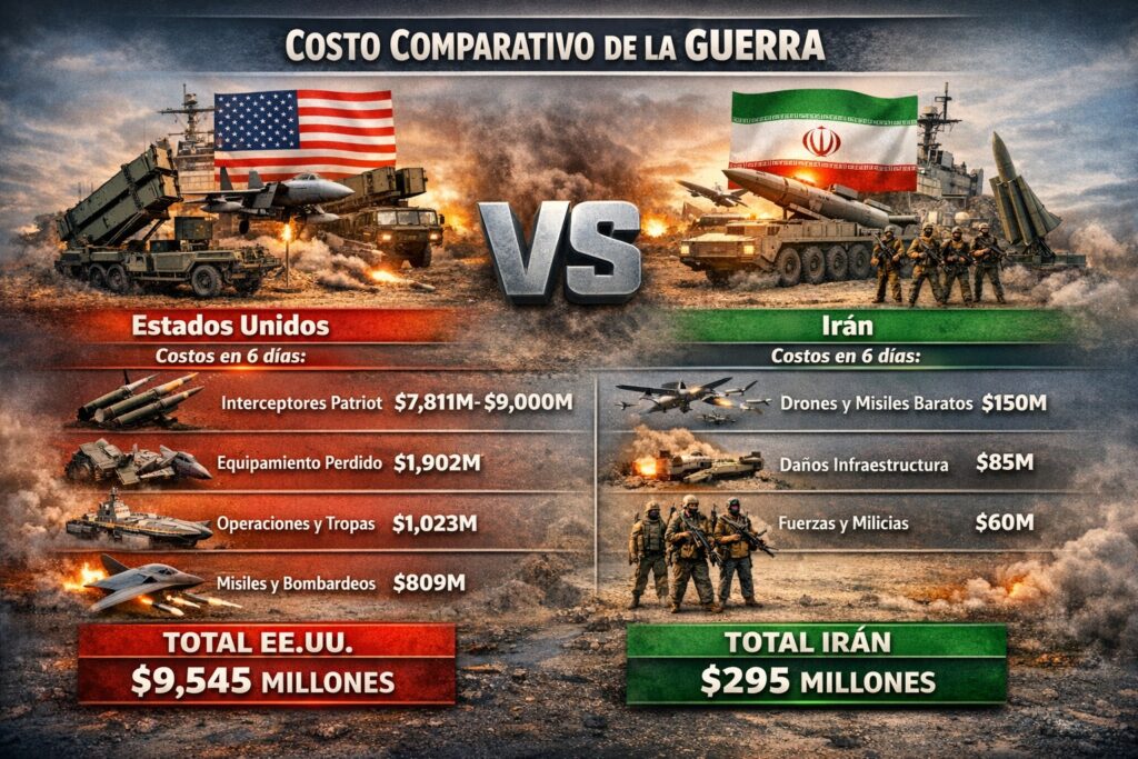 Si en apenas seis días esta guerra ha costado entre 7,000 y 9,000 millones de dólares, la matemática del conflicto empieza a dibujar escenarios inquietantes.