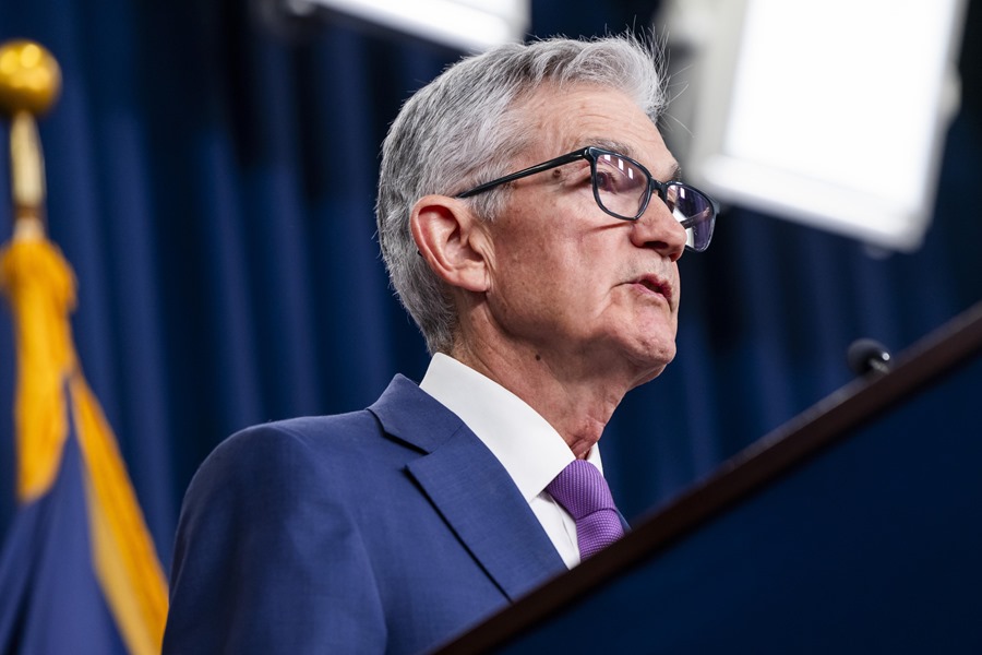 El presidente de la Junta de la Reserva Federal de EE.UU., Jerome Powell, habla con los periodistas en Washington, DC, EE.UU. EFE/EPA/Jim Lo Scalzo