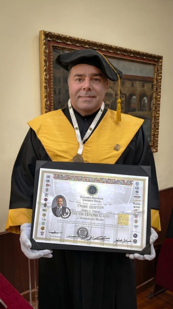 La ceremonia se celebró en el histórico Ateneo de Sevilla, donde Scerra recibió las distinciones otorgadas por la Organización de las Américas para la Excelencia Educativa (ODAEE) y el Claustrum Doctoralis Universum Vitalis, avaladas por consejos académicos de varias universidades, que valoraron su impacto en la innovación médica y su contribución al fortalecimiento de la medicina física y rehabilitación a nivel internacional.