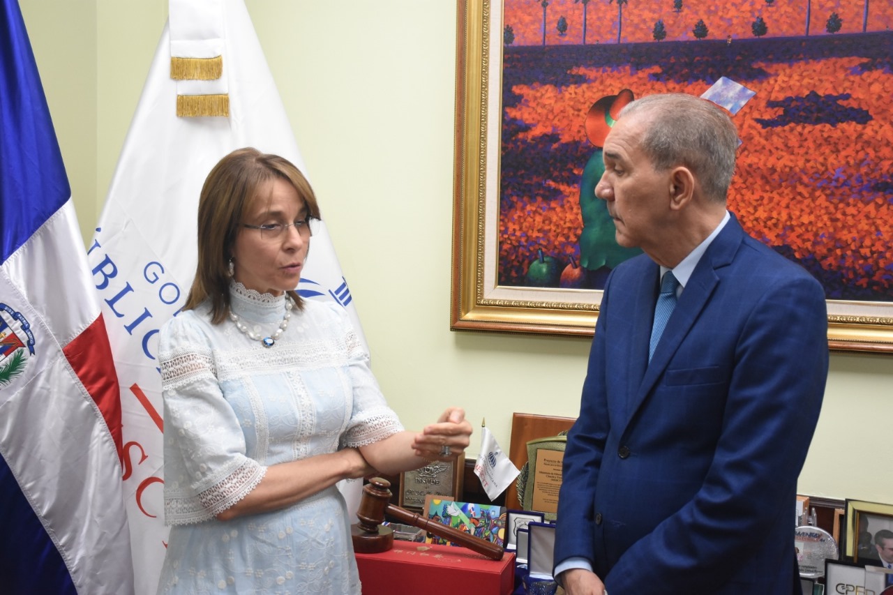Santo Domingo. – El ministro de Educación Superior, Ciencia y Tecnología (MESCyT), doctor Franklin García Fermín, recibió la visita de cortesía y de trabajo de la embajadora de la República Dominicana ante la República Portuguesa, Patricia Villegas, con quien conversó sobre importantes avances en materia de cooperación académica.