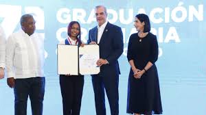 Barahona. – Un total de 1,020 jóvenes de la región Sur se graduaron este domingo del programa Oportunidad 14-24 del Gabinete de Política Social, en un acto encabezado por el presidente Luis Abinader, quien además participó en el escenario de la entrega de reconocimientos a estudiantes meritorios.