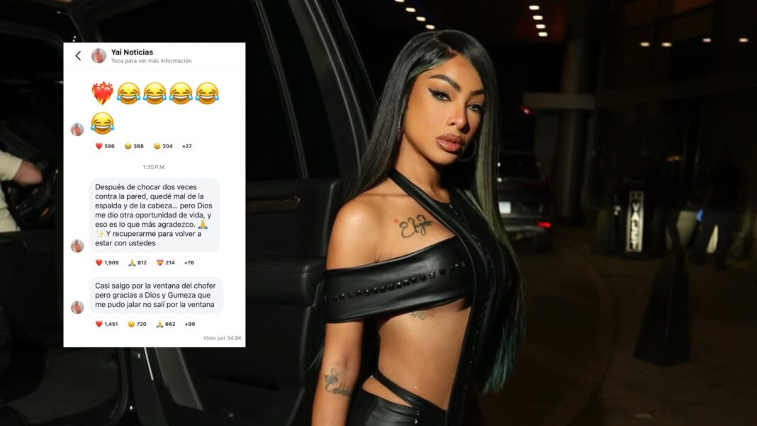 La artista urbana Yailin La Más Viral informó este domingo a sus seguidores que sufrió un accidente de tránsito, del cual resultó con golpes en la espalda y la cabeza, pero fuera de peligro.